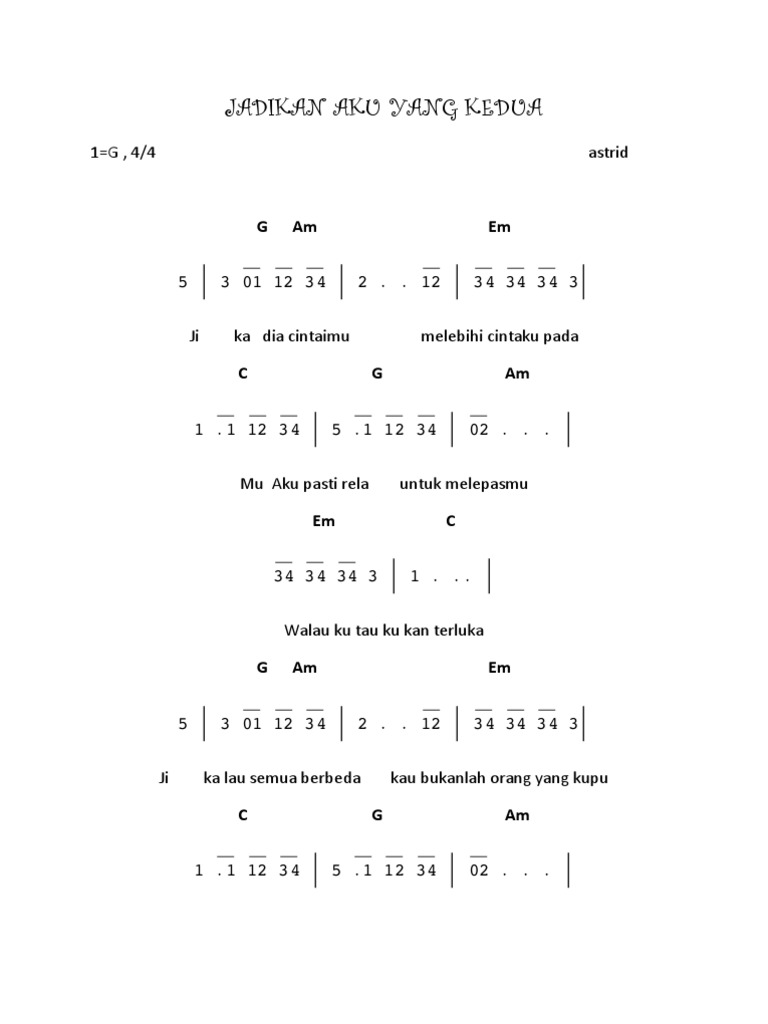 Chord Jadikan Aku Yang Kedua By Astrid Chordlicious