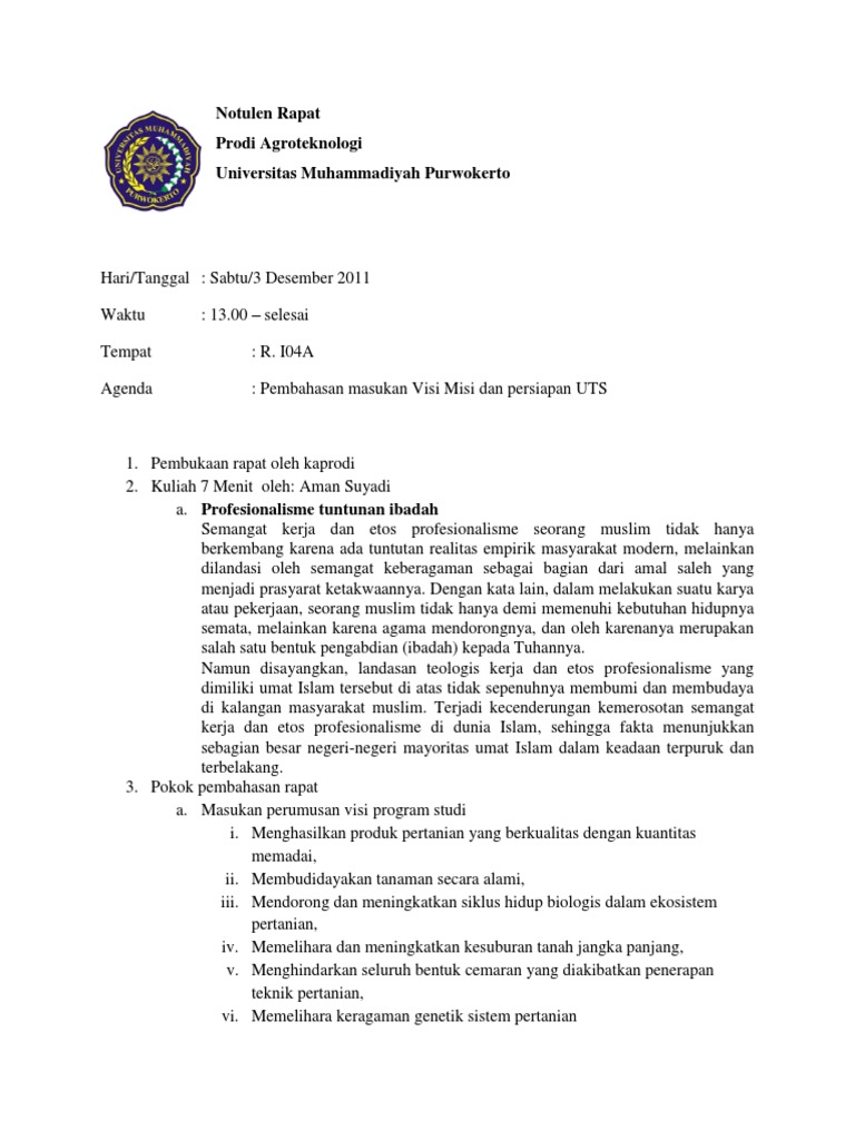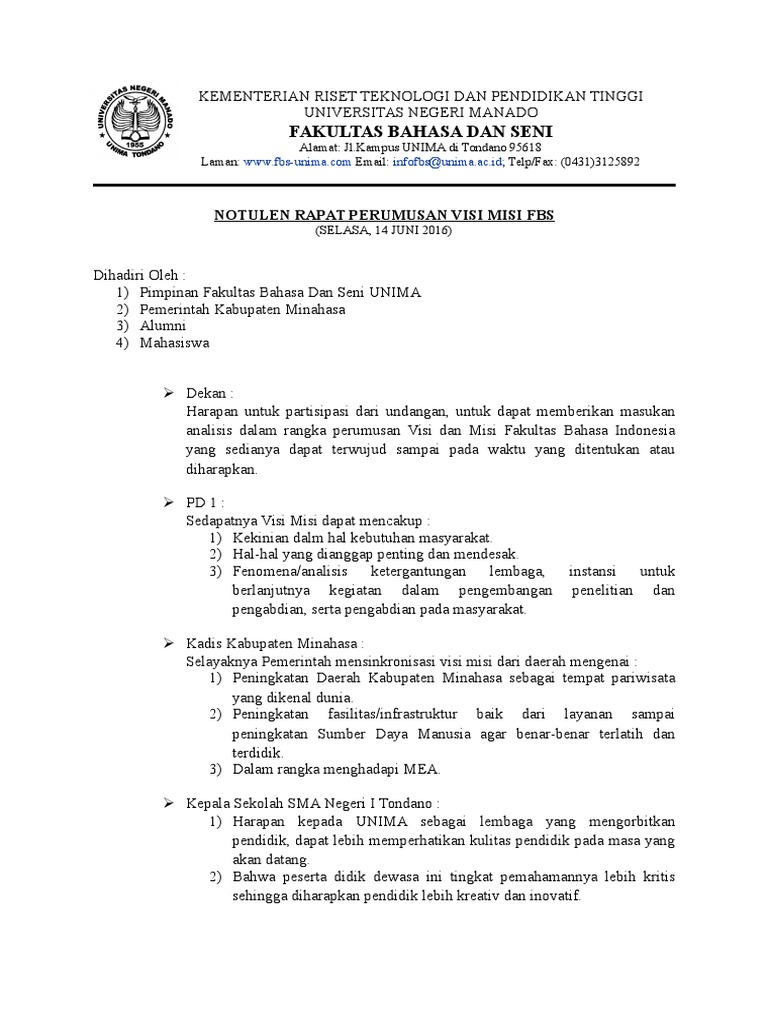 Contoh Notulen Rapat Visi Misi Dan Tujuan Sekolah Temukan Contoh
