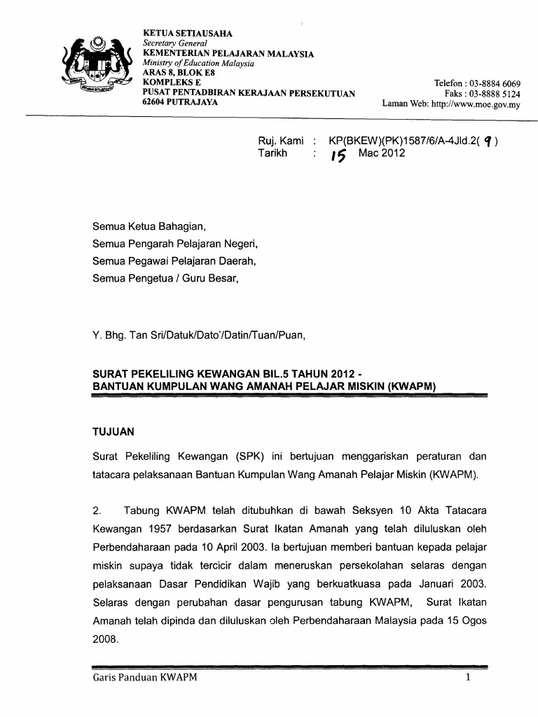 Surat Pekeliling Kwapm 2012 Pdf Document