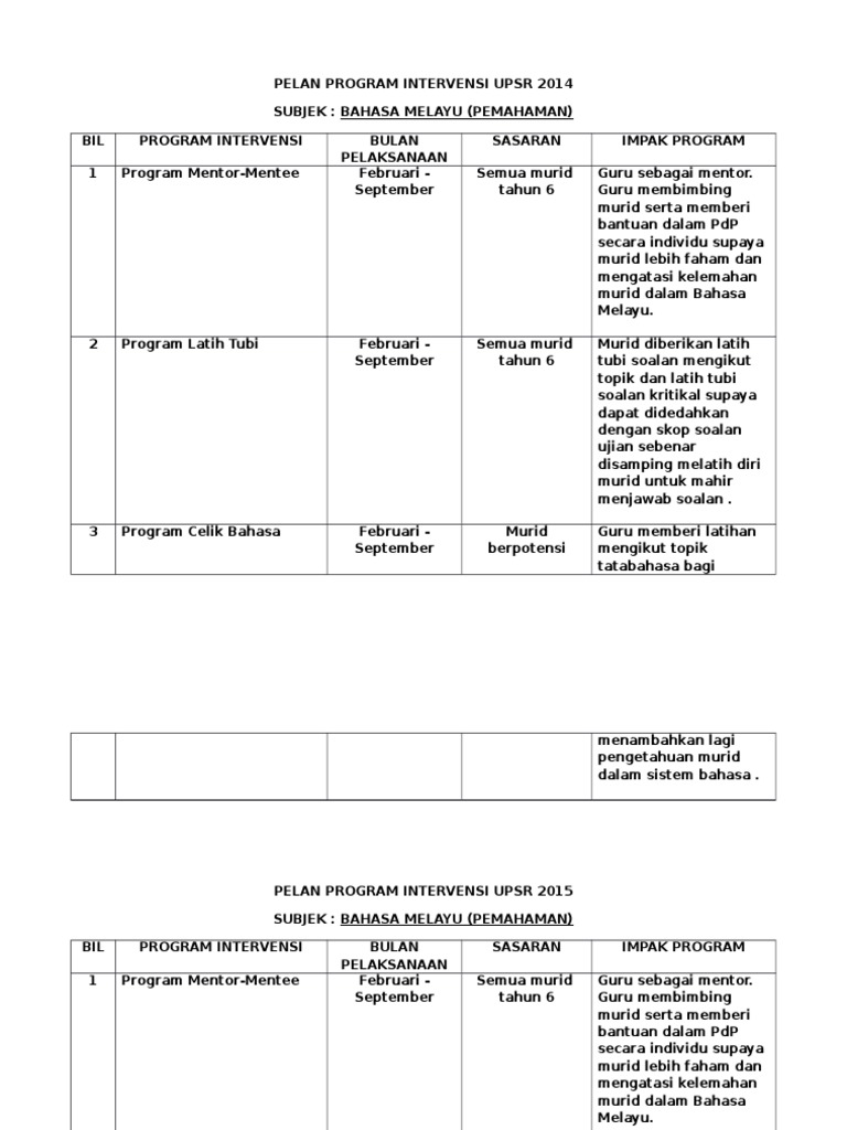 Pelan Program Intervensi Upsr 20142015 Bm1
