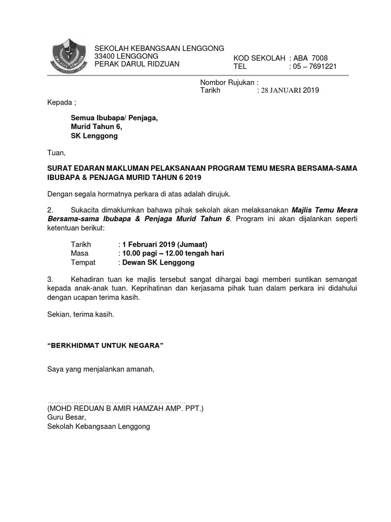 Semua Ibubapa Penjaga Murid Tahun 6 Sk Lenggong