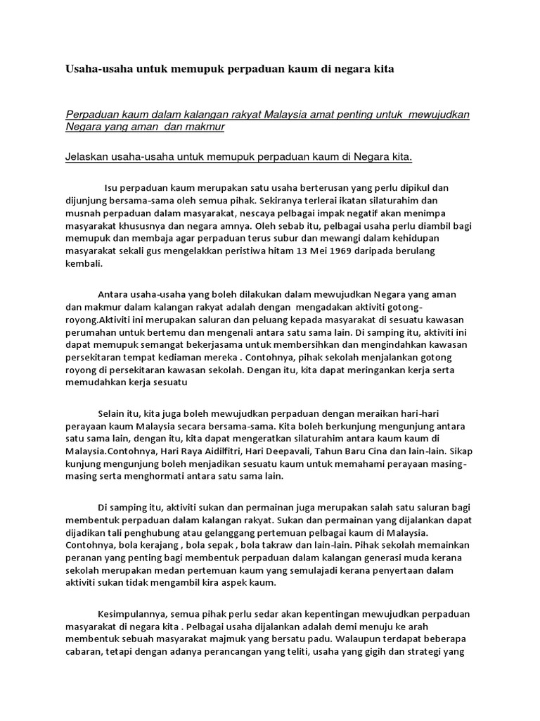 Usaha2 Memperkukuh Perpaduan Kaum Rakyat Malaysia Doc